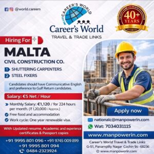 - HIRING FOR CONSTRUCTION WORKER IN MALTA